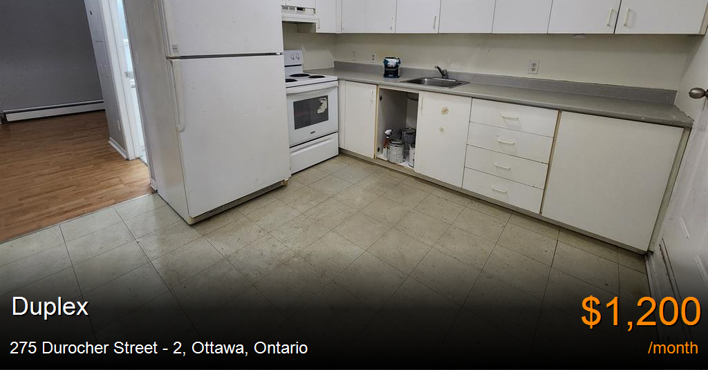 Duplex for rent in Ottawa at 275 Durocher Street - 2. Large studio unit in Vanier. The spacious kitchen offers a dine-in option and there is ample cupboard space! The bedroom is also a great size with a double door closet. A great feature is the shared patio space with direct access from the unit. Street parking is available and tenant just pays hydro. ***Located in Vanier North, close to Beechwood and Durocher Market. It is also in close proximity to Richelieu Park and the Rideau River! Just minutes away from grocery stores, restaurants, local shops, and the St. Laurent Shopping Centre. The Highway 417 is a short drive away making it a breeze to travel around the city.