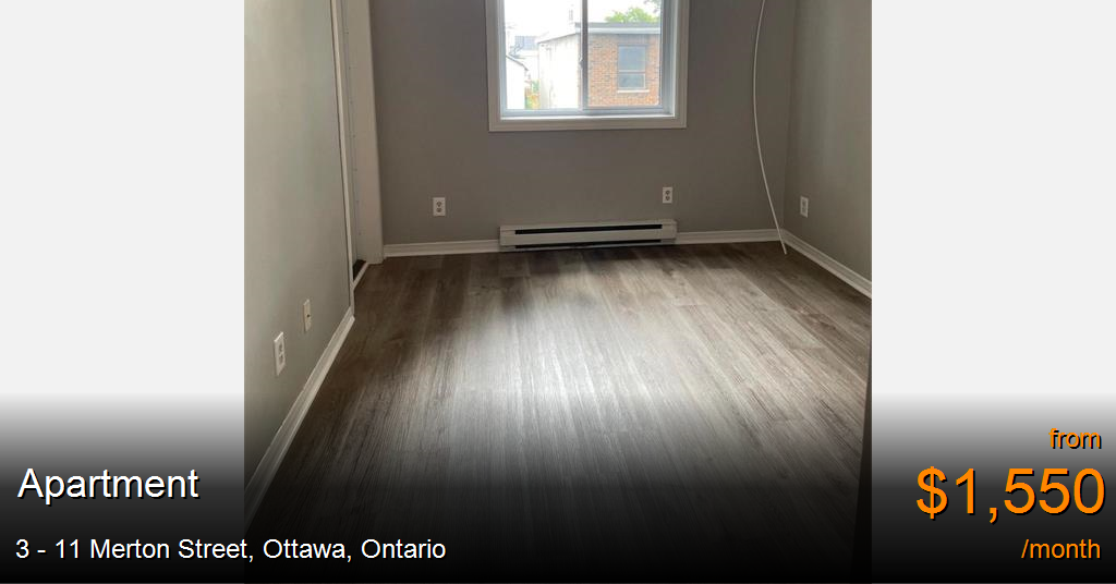 Apartment for rent in Ottawa at 3 - 11 Merton Street. ***11 Merton is a hidden gem in the heart of Hintonberg! This spacious one bedroom apartment offers brand new flooring and fresh paint throughout! The U-shaped kitchen has tons of counterspace and brand new cabinets. The living area is massive and allows for a separate living & dining space, accompanied by oversized windows. Other perks of this unit are the cozy balcony and large bedroom. Coin laundry on site, no parking availble and tenant is responsible for heat, hydro & hot water. ***Chic building within walking distance from quaint outdoor cafes, specialty shops, trendy boutiques and a diversity of pubs and restaurants of every kind in trendy Hintonburg. Just minutes from downtown with public transit, recreation and cultural amenities nearby, and the 417 highway for all of your traveling needs