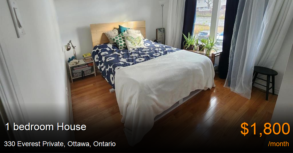 House for rent in Ottawa at 330 Everest Private. Beautiful 1 bedroom and den located just a few minutes from Trainyards and the highway. The kitchen offers lots of counter and cupboard space, including a breakfast bar. Great size living room with an outdoor space, perfect for a BBQ. The bedroom offers lots of natural sunlight and a great size closet. The den is perfect for an office with glass French doors. Ensuite laundry and 1 parking spot included.