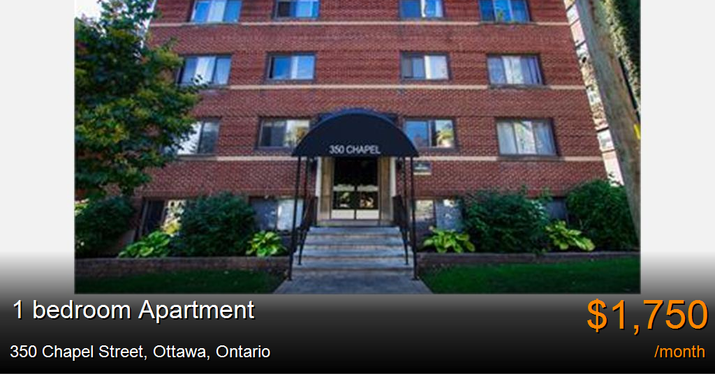 Apartment for rent in Ottawa at 350 Chapel Street. Spacious 1 bedroom unit located in the heart of Sandy Hill. The unit offers a large living room with large window and a storage closet. Large bedroom with two closets for additional storage space. Hardwood floors throughout. Nice size kitchen with a dinning room nook. The bathroom has a tub and storage closet.