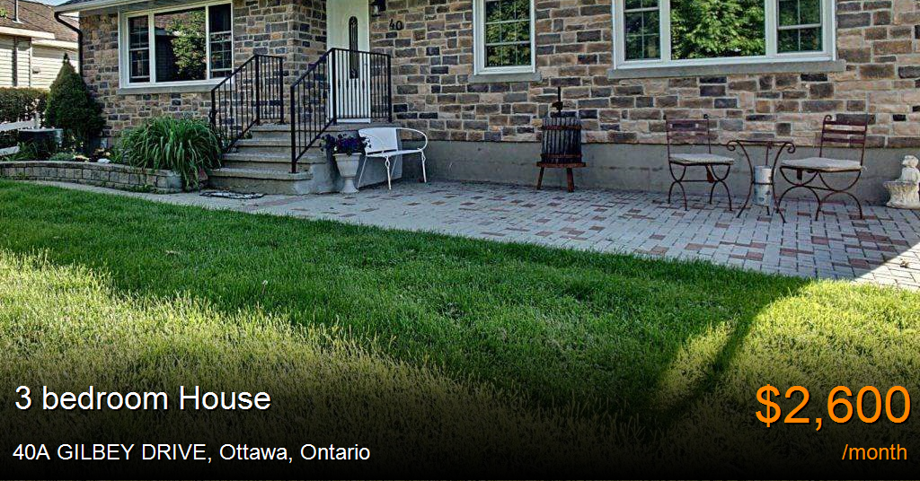 House for rent in Ottawa at 40A GILBEY DRIVE. Spacious Detached Bungalow in Desirable Parkwood Hills: This charming bungalow offers timeless mid-century charm and multi-generational living. The main floor boasts a formal living room, dining room, and a rustic family room with a stone fireplace. The eat-in kitchen offers access to the backyard on a Large Lot, Offering 3 Bedrooms, 1 Bathroom, and an Updated Kitchen with Newer Appliances. Lots of storage. It is a beautiful property inside out. Parking for six cars! Fisher Heights area is convenient for commuting to DT Ottawa, within walking distance of shopping malls, restaurants, schools, daycare, and fitness centers. Excellent neighbours.