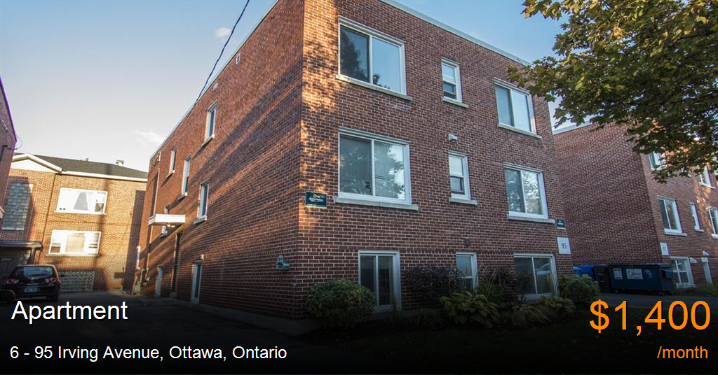Apartment for rent in Ottawa at 6 - 95 Irving Avenue. Beautiful 2 bedroom unit with hardwood floors available for May 1st. Open concept living space allows to great entertaining space. The kitchen features stainless steel appliances, including a dishwasher and granite countertops. The bedrooms also have great closet space and large windows to let plenty of light in.