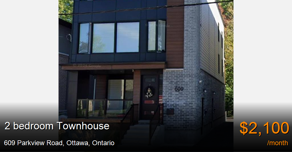 Townhouse for rent in Ottawa at 609 Parkview Road. Modern 2-Bedroom, 2-Bathroom Basement Unit with Private Patio – Move-In Ready!Address: 611 Parkview Road, Ottawa, ON, K1Z 6E6Rent: $2,100/month (Water Included)Parking: Street Parking is AvailableAvailability: Move-in ready!