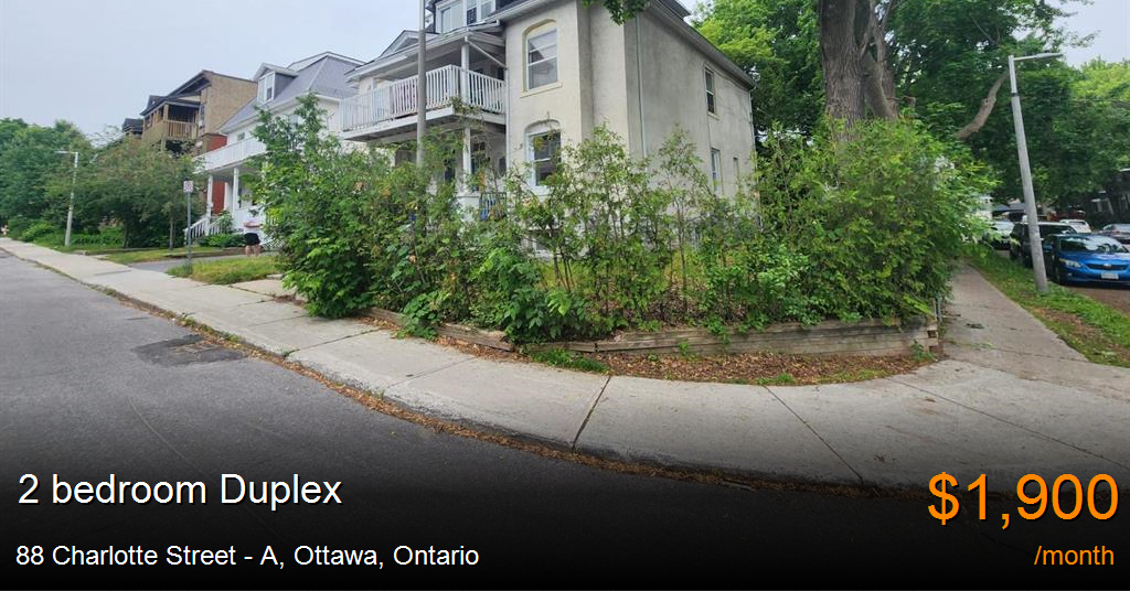 Duplex for rent in Ottawa at 88 Charlotte Street - A. Newly renovated 2 bed, 1 bath in prime Lower Town! Perfect for students or young professionals looking for convenience. Modern kitchen and bath with updated appliances and two spacious bedrooms with ample closet space.