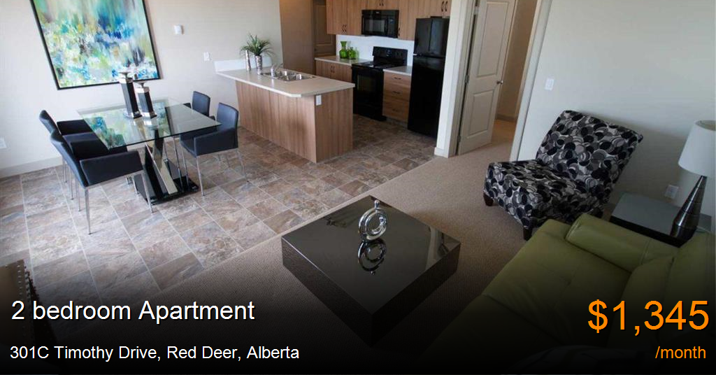 Apartment for rent in Red Deer at 301C Timothy Drive. Live in condo-style luxury in Red DeerYou deserve to live somewhere you’re proud to show off to friends and family. Host a potluck in your new apartment, serve food and drinks at your kitchen bar, and socialize with friends on your private balcony. Unwind at the end of the night with a relaxing bath and then retreat to your queen-size bed for some well-earned rest and relaxation. Never feel embarrassed to show off your apartment again as you will be the envy of every social event with a Laebon apartment.