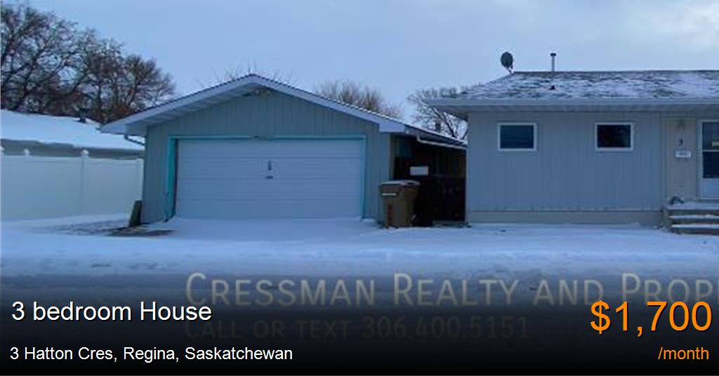 House for rent in Regina at 3 Hatton Cres. Amenities include Fridge, Laundry, Stove and Microwave.