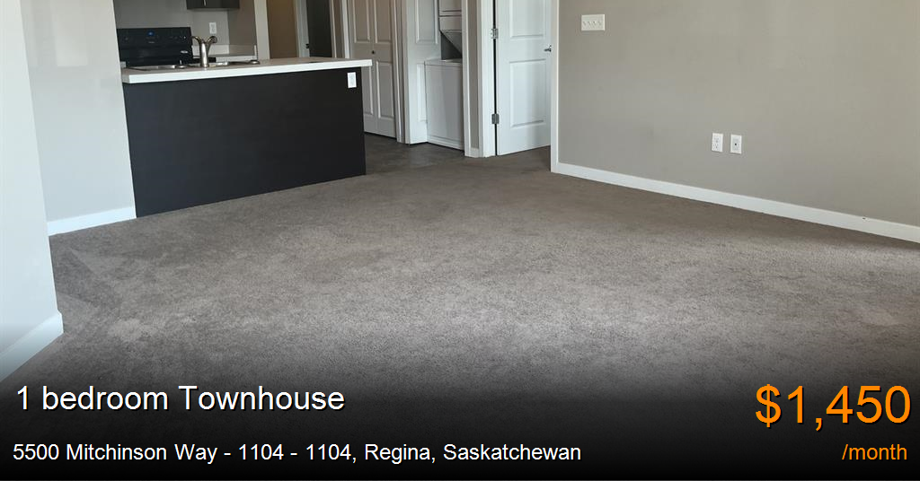 Townhouse for rent in Regina at 5500 Mitchinson Way - 1104 - 1104. UTILITIES INCLUDED 1 Bedroom Apartment in Regina – Available immediately