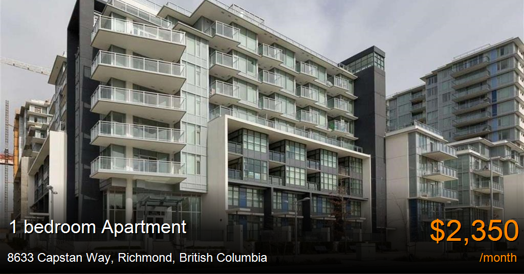 Apartment for rent in Richmond at 8633 Capstan Way. Welcome to the Sorrento, this building was build in 2015. Comprised of a mix of residential, retail, office spaces, artist studios, a hotel, and adjacent to the Canada Line. Centered around a large landscaped courtyard featuring a large amenities complex and a stylish interior design. Access many different restaurants around the location includes; Manzo Japanese Restaurant, Pho Han, The Captain's Boil and many more! Great location for easy access to transit and parks!