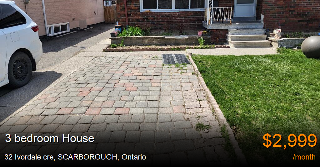 House for rent in SCARBOROUGH at 32 Ivordale cre, Unit:Main floor. Hi there,