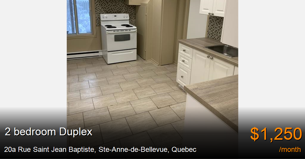 Duplex for rent in Ste-Anne-de-Bellevue at 20a Rue Saint Jean Baptiste. Newly Renovated Lower Duplex 2 bedroom available for rent in Sainte-Anne-De-Bellevue