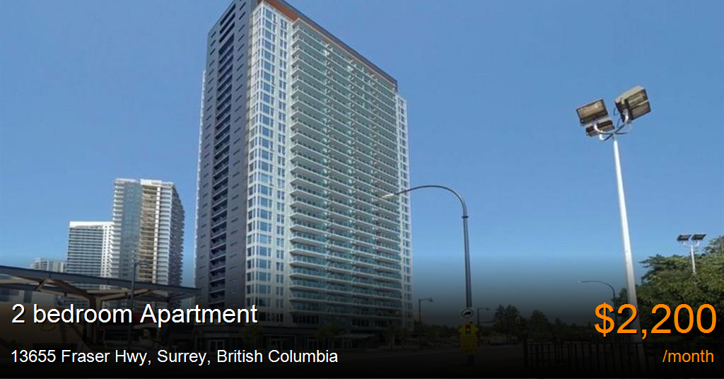 Apartment for rent in Surrey at 13655 Fraser Hwy. A brand new 2 bed 2 bath condo at the King George Hub building is available for rent immediately.