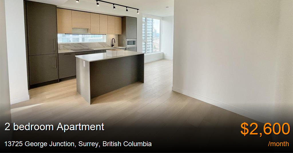 Apartment for rent in Surrey at 13725 George Junction. Amenities include Indoor pool, Mountain views, Laminated floors, Utilities: Not Included, A/C, Convenience store, Schools nearby, Air conditioner, Park views, walk-in closet, Balconies, Dishwasher available, Underground parking, Stove, Fitness, EV Charging, In-suite Laundry, Dryer in suite, Fridge, Unfurnished, Elevators, Underground Parking, No Smoking allowed, Microwave, City views, Shopping nearby, Public transit nearby, 1 Parking stall, Blinds, Gym, Shopping Nearby, Washer in suite, Ensuite bathroom, Reputable school nearby, shoppings nearby, Fully Equipped Kitchen, Air Conditioning, Internet not Included, Public transit, Modern Design, Window coverings and View.