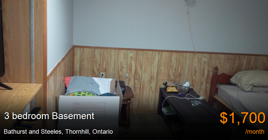 Basement for rent in Thornhill at Bathurst and Steeles. 3 bedrooms - separate entrance - private washer & dryer - utilities included except internet - 1 washroom with shower & bathtub - kitchen - dining area - stove & refrigerator included - parking for one vehicle - one cat permitted