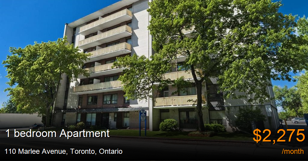 Apartment for rent in Toronto at 110 Marlee Avenue. Building InformationLovely midtown living.Located in Upper Forest Hill, the area has everything. Sitting atop one of Toronto's most affluent neighbourhoods, refined shopping and dining are directly south. Yorkdale Mall, one of the largest and most popular shopping malls in Canada, is just a few minutes away. The immediate area offers all the necessities, from groceries and dry cleaners to convenience stores and more. It's a great neighbourhood to call home, and the mid-town location can't be beat. With access to Allen Road and nearby Highway 401, plus the Glencairn Subway Station a few blocks away, the conveniences of this lovely and well-kept community are impressive.