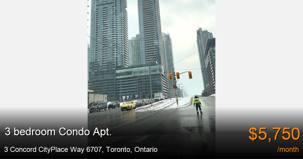Condo Apt. for rent in Toronto at 3 Concord CityPlace Way 6707. ***Brand New 3-Bedroom Condo with SPECTACULAR 67th Floor Views of the CN Tower & Lake Ontario at Concord Canada House! ***With 920 Sq.Ft. Of Well-Designed Interior Living Area Plus A 132 Sq.Ft. Heated Outdoor Balcony For Year-Round Use. Features Include Miele Appliances, Modern Finished Balcony Door, And Floor-To-Ceiling Windows. World-Class Building Amenities: 82nd Floor Sky Lounge, Sky Gym; Indoor Pool; Ice Skating Rink; Touchless Car Wash & More. *** Some Amenities Will be Available On Later Date. Prime Downtown Location, Steps to CN Tower, Rogers Centre, Scotiabank Arena, Union Station, Financial District, Waterfront, Restaurants, Shopping & Entertainment. Move In Condition. Come & Experience Luxury Living In The Heart Of City! One EV Parking Included