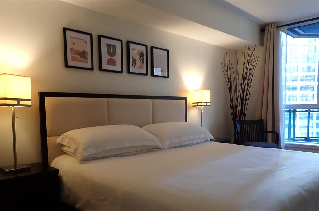 Condo Apt. for rent in Toronto at 38 elm street, Unit:1002. Welcome to our condo at the Luxury Minto Plaza Condos! The place is a mixture of minimalist design and cozy environment. Located on the tenth floor, you'll find a large bedroom with king size bed with a comforter, pillows, and bedding; blackout curtains (for comfortable sleep at any time of the day) and 2 big closets. It has a spacious bathroom with a shower and jacuzzi tub, the living room with the balcony and open space for dinning and entertaining.