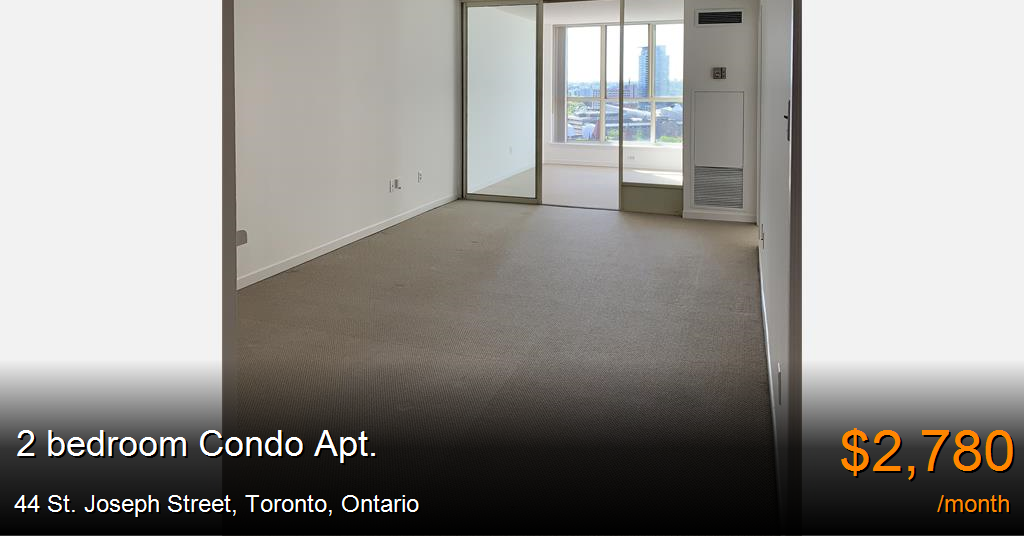 Condo Apt. for rent in Toronto at 44 St. Joseph Street. This is a One Bedroom plus Large den unit in a sought-after 28 storey building located on Bay street. Condo building at 44 St. Joseph Street, Toronto. The building is surrounded by the best that Toronto has to offer and is within walking distance to Queens Park, U of T, Ryerson, hospitals, the financial district, Bloor/Yorkville shopping, and 24-hr supermarkets. With a Walking and Transit Score of 99, the Polo Club2 offers the convenience of Downtown with the luxury and style of condo living.