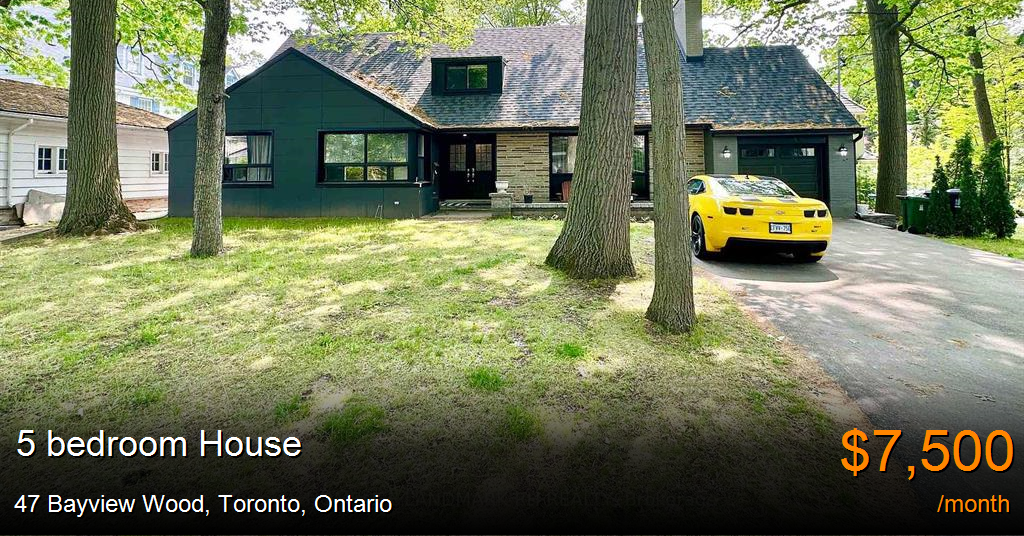 House for rent in Toronto at 47 Bayview Wood. Exclusive Private Cul-De-Sac Residence w/wide 105ft frontage and long double driveway can park 6 cars. Bright & Spacious W/6 Bdrms. Recently renovated w/pot lights and hardwood flooring throughout. Modern kitchen w/quartz countertop, backsplash & Stainless steel appliances. Large open concept finished basement w/laminate flooring. Steps To Sunnybrook Hospital & Park, York Glendon Campus, Short Drive To Midtown, Downtown, Golf, Shopping Etc. Close To Many Top Private Schools: Steps To T.F.S. Close To B.S.S, U.C.C., Crescent School, Havergal.