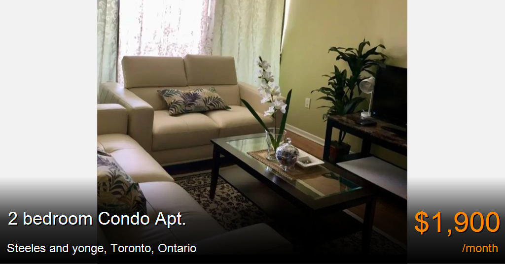 Condo Apt. for rent in Toronto at Steeles and yonge. 1200 sq feet,laundry,balcony, 1 park place, all utilities include, balcony, close to subway, schools, ttc, shopping malls.1900 a month beginning March 20. twenty first floor, french immersion school