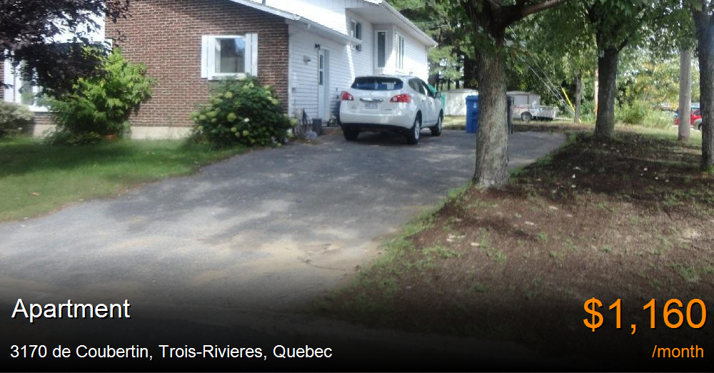 Apartment for rent in Trois-Rivieres at 3170 de Coubertin. Immeuble de 2 logements côte à côte, chacun sur deux étages (rez-de-chaussée et sous-sol). Chaque logement dispose de sa cour privée à l’arrière, séparée par un mur d’intimité.L’immeuble est bien situé, à proximité d’un aréna, d’un parc et d’un sentier boisé, dans un secteur tranquille et recherché.