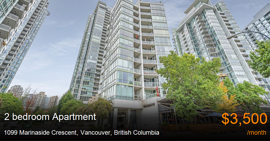 Apartment for rent in Vancouver at 1099 Marinaside Crescent. Welcome to Marinaside Resort 1,2 & 3! Located in the heart of the marina, this building is situated to take full advantage of the breathtaking southern waterfront views with spacious outdoor balconies and expansive floor-to-ceiling windows. Inside, the building is open to a peaceful inner garden courtyard with adjoining ponds. Stroll the seawall or spend the day in Yaletown's fabulous shops and cafes. Urban Fare, the Canada Line, and Vancouver's bustling downtown are just moments away.