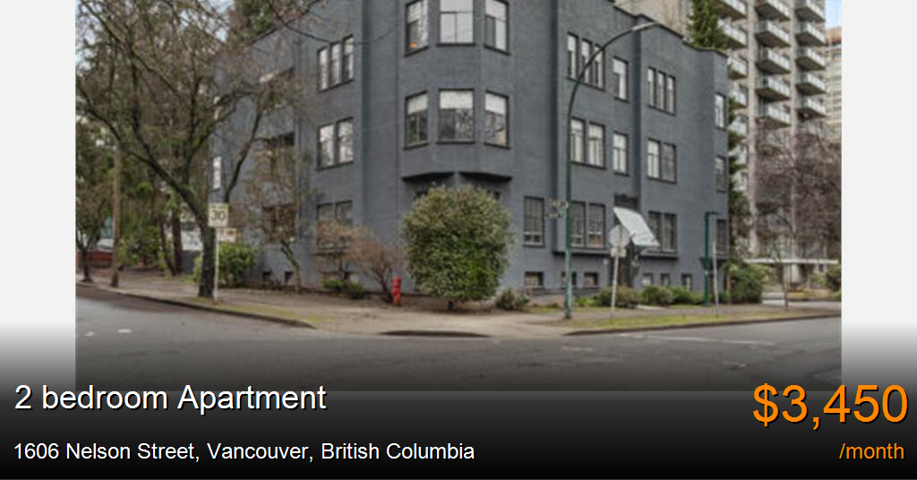 Apartment for rent in Vancouver at 1606 Nelson Street. The Lincoln Apartments is a three-storey, 13-unit apartment building comprised of one-, two-and three-bedroom suites. All available units offer renovated character suites, open-concept kitchens with dishwashers and updated bathrooms. The building is located at 1606 Nelson Street nestled in the desirable West End neighbourhood of downtown Vancouver, conveniently situated just steps from retailers, restaurants, and coffee shops, allowing most errands to be accomplished on foot. Residents can enjoy a relaxing walk to English Bay, Davie Village, and Stanley Park.