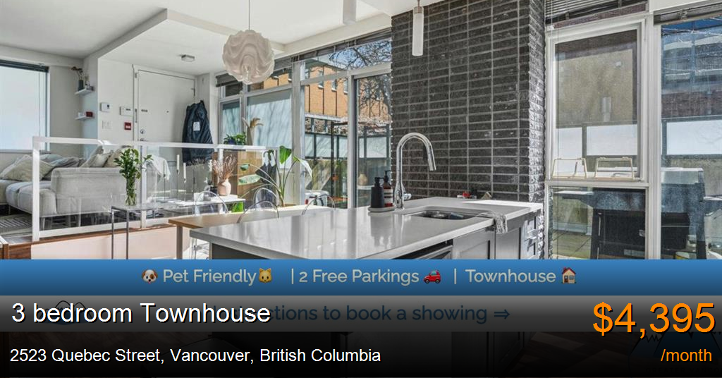 Townhouse for rent in Vancouver at 2523 Quebec Street. Address: 2523 Quebec Street, Vancouver, BC Available: May 1st