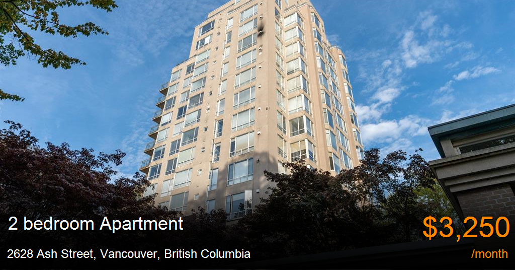 Apartment for rent in Vancouver at 2628 Ash Street. Cambridge Gardens is a charming 19 storey building that was built in 1990 in the great location of Cambie Village! Cambridge Gardens is within walking distance to Vancouver City Hall, transit, grocery stores and Downtown Vancouver! This building features a bike room, indoor pool, sauna, guest suite, storage, and swirl pool!