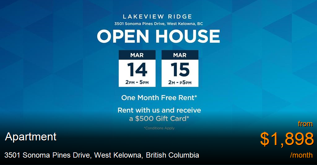 Apartment for rent in West Kelowna at 3501 Sonoma Pines Drive. OPEN HOUSE EVENT: